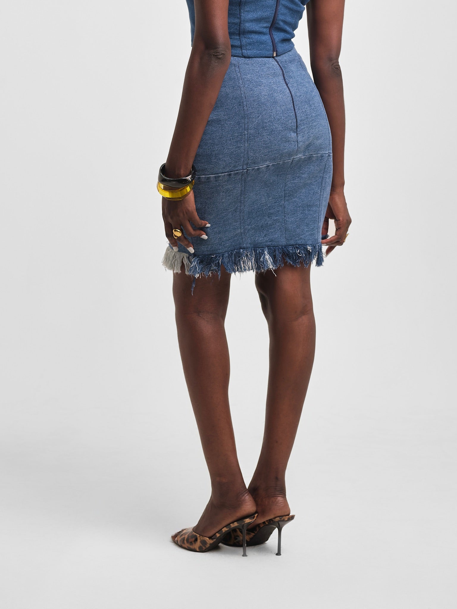 This piece is made from 1 reclaimed denim pant, extending the life of existing materials and reducing textile waste. Each skirt is produced in limited quantities with intentional design, celebrating circular fashion and mindful craftsmanship.